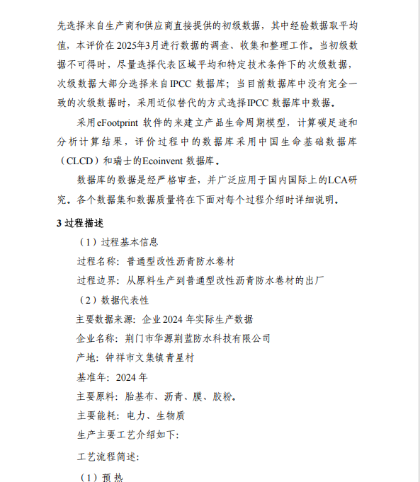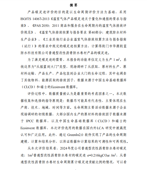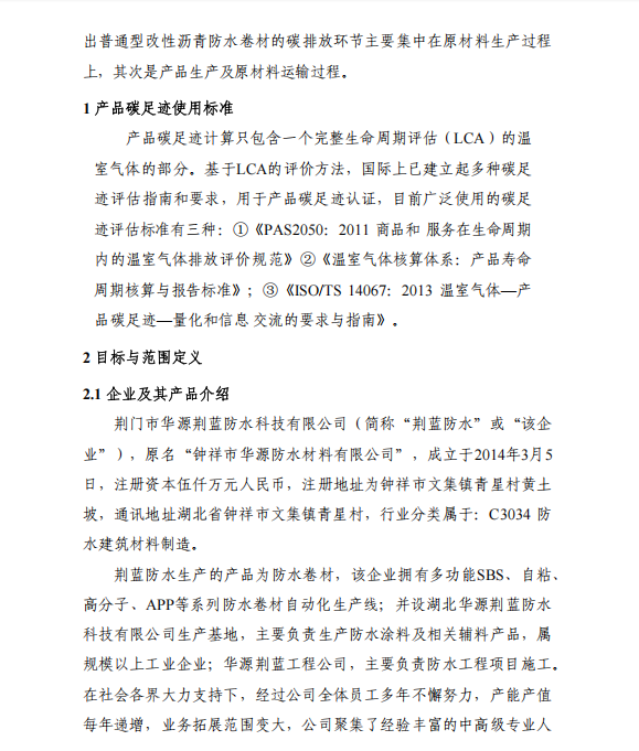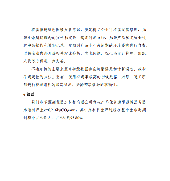 荊門市華源荊藍(lán)防水科技有限公司產(chǎn)品碳足跡報(bào)告